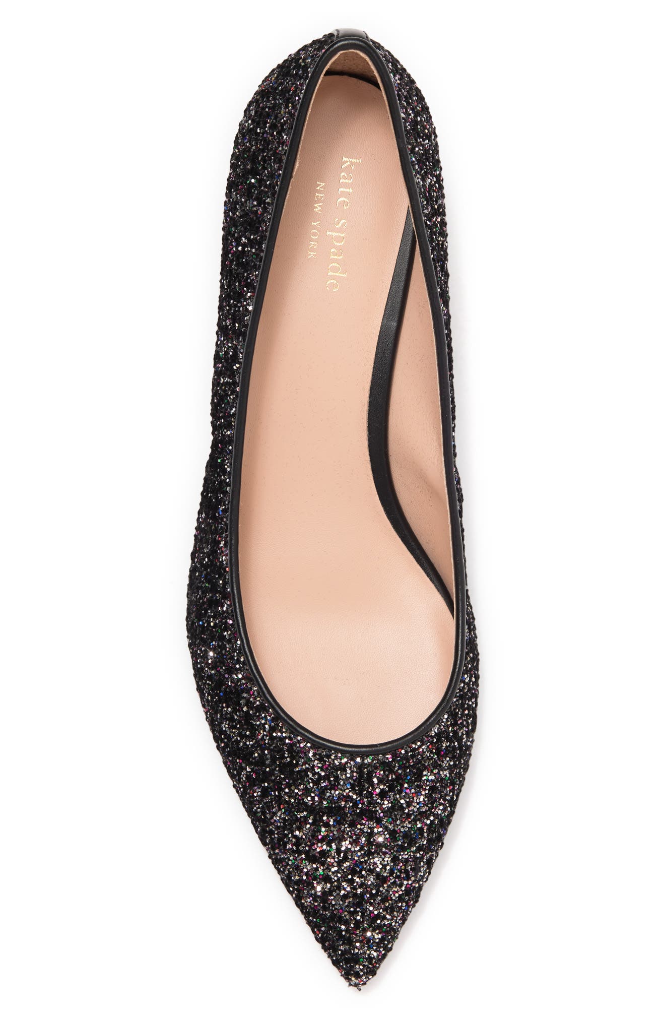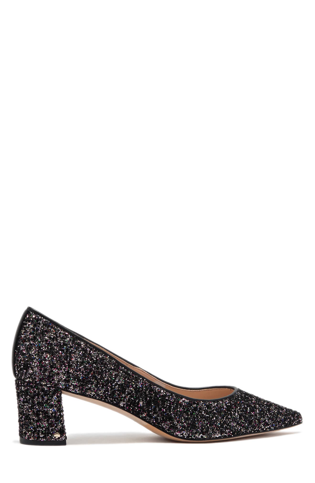 Kate Spade New York Because nothing puts an extra spring in your step like the right shoes. Almond-toe pumps Allover glitter details 2 block heel Glitter fabric.